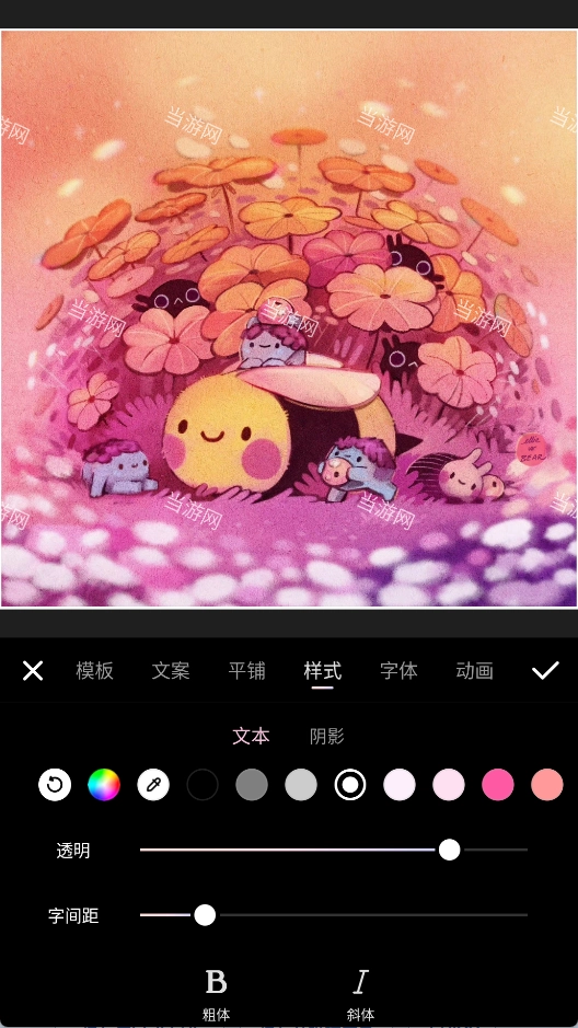 选择一款模板,在文案页面设置显示的文字