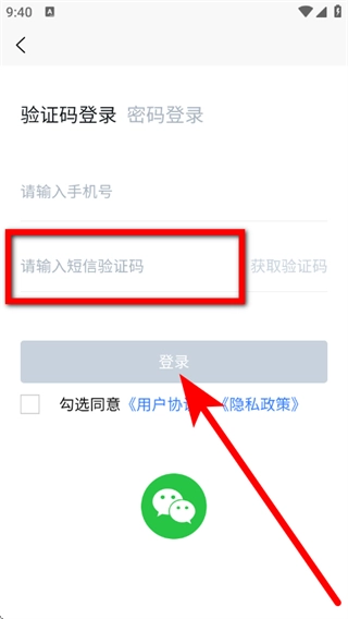请先输入短信验证码,接着勾选同意相关协议,然后点击登录按钮,即可完成登录操作。