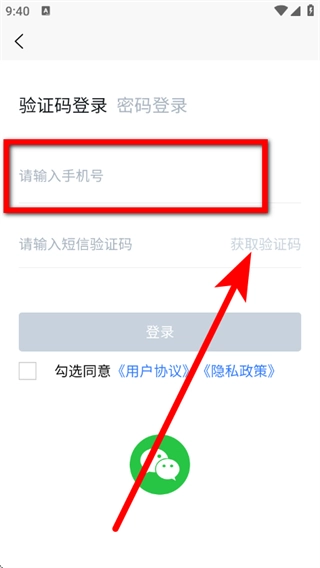在登录页面,输入手机号,点击获取验证码。