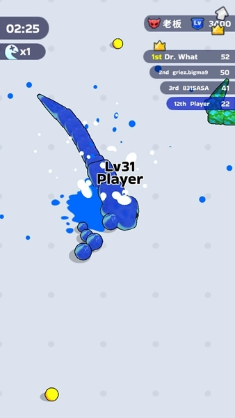 吃掉周围的黄球可以让我们的蛇变得更长等级更高。