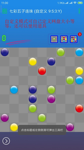 《七彩五子连珠》是一款休闲益智类游戏。在游戏中,玩家需要通过不断连珠,凭借智慧持续获取胜利。这款游戏能有效锻炼思维发散能力,让玩家在趣味体验中提升思维水平,玩法十分有趣。它适合各年龄段人群,有助于增强逻辑思维与全局分析能力,使思维更加敏捷。游戏规则为:将同色彩球以横、竖或斜向排列成至少5个的直线,即可消除并得分;若移动后未得分,会随机新增3个彩球;当空格被完全填满时,游戏结束。此外,若触屏操作出现偏差,系统提供10次悔棋机会。
