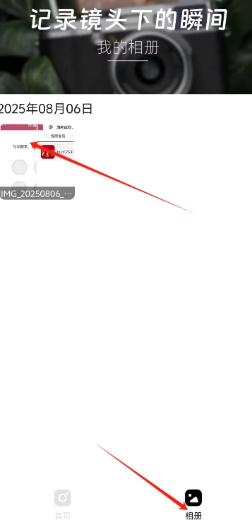 用户进入软件后,在相册界面能浏览到过往的编辑历史,点击想要删除的照片,即可展开更多功能进行操作。