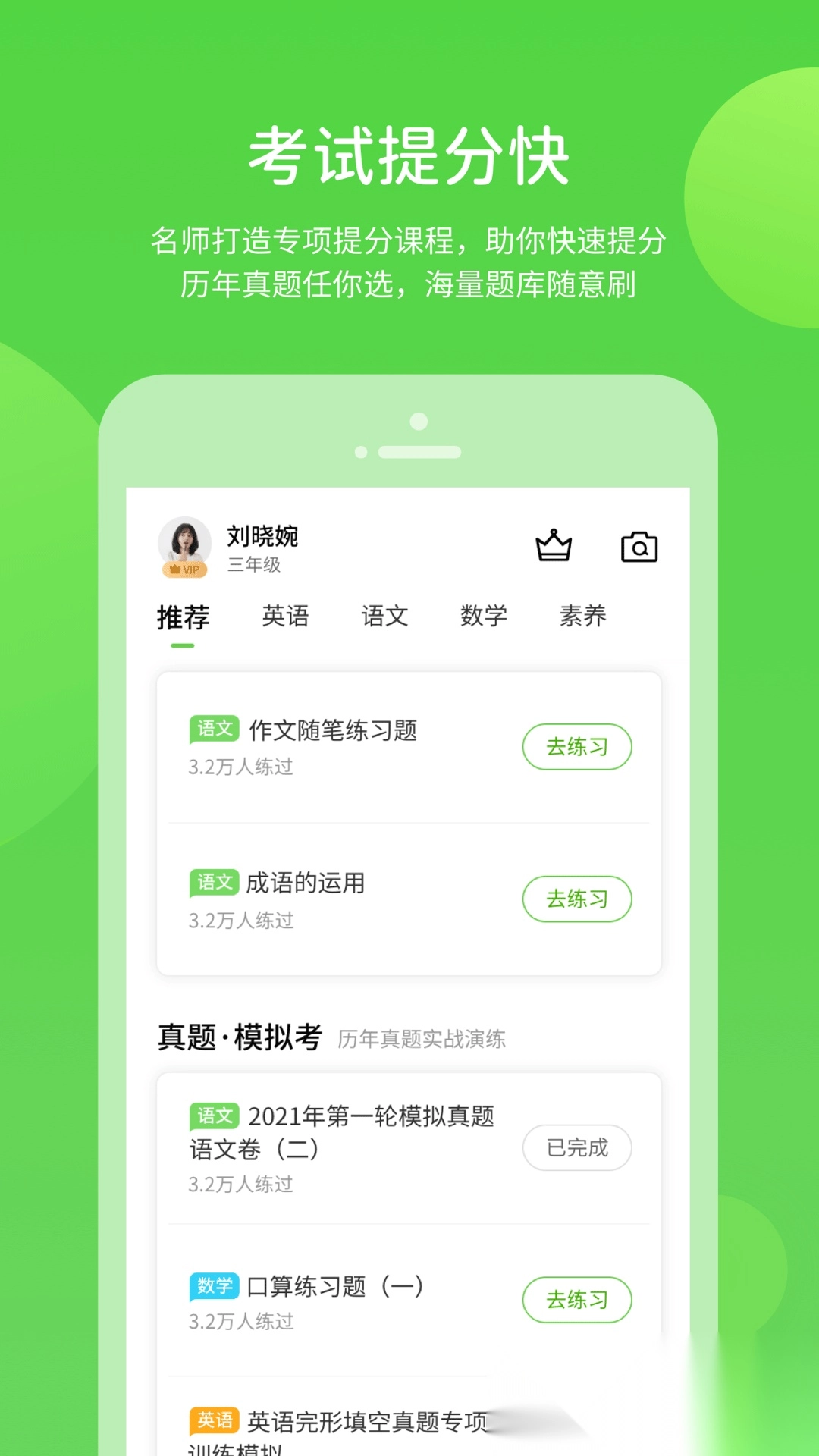 历年真题在线功能,方便用户轻松开展练习,助力提升题目解答能力; 2. 同学圈板块支持日常学习交流,发布动态还能分享个人生活点滴; 3. 丰富的学科辅导工具,全方位辅助学习,有效提高学习效率; 4. 课文点读功能,帮助学生精准进行语音跟读与朗读训练。