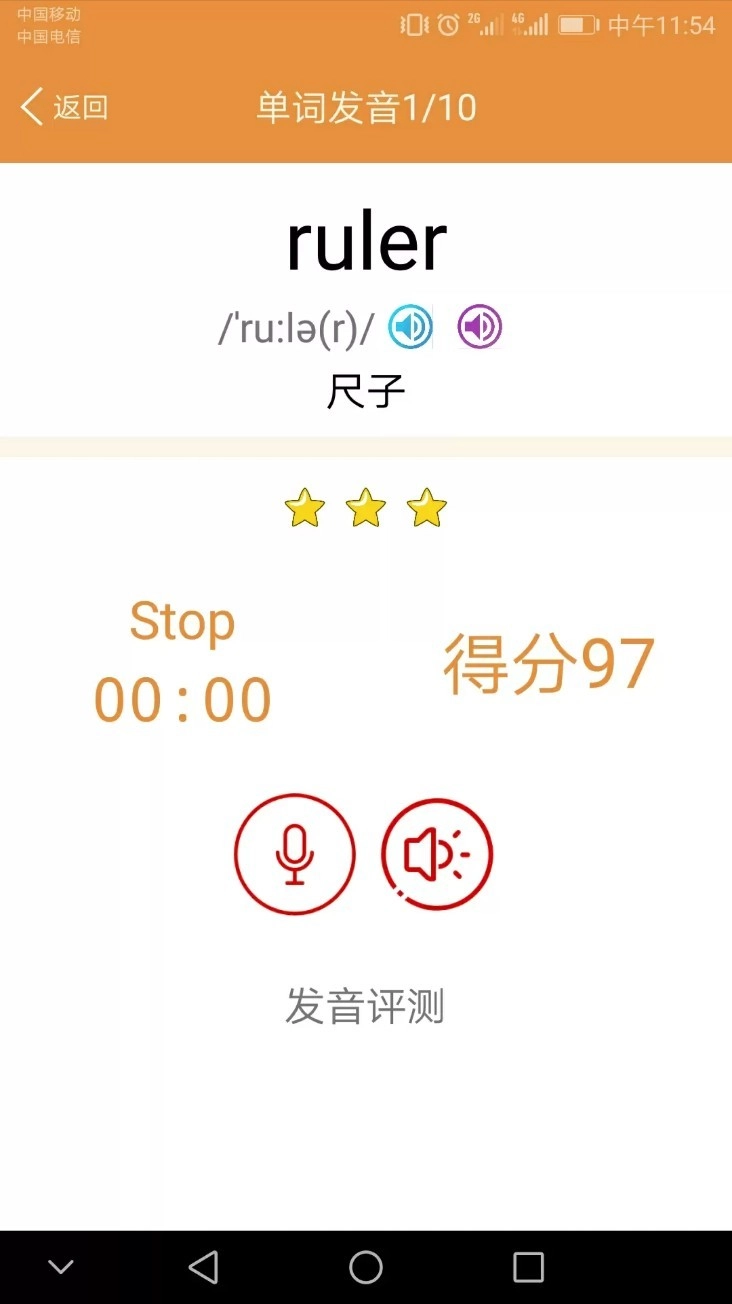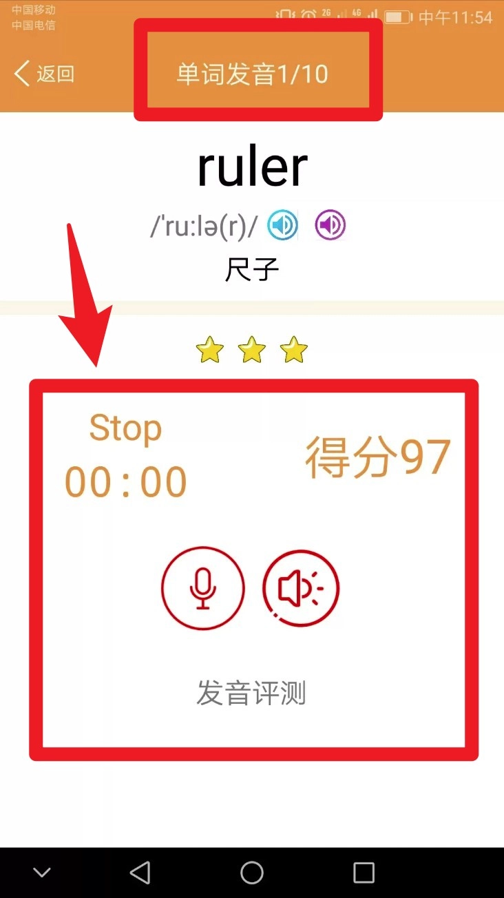 进入发音评测环节后,点击麦克风图标开始朗读,系统会实时给出评分,助力你纠正发音上的不足。