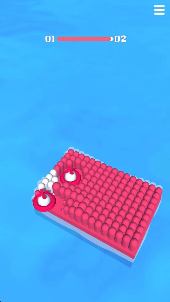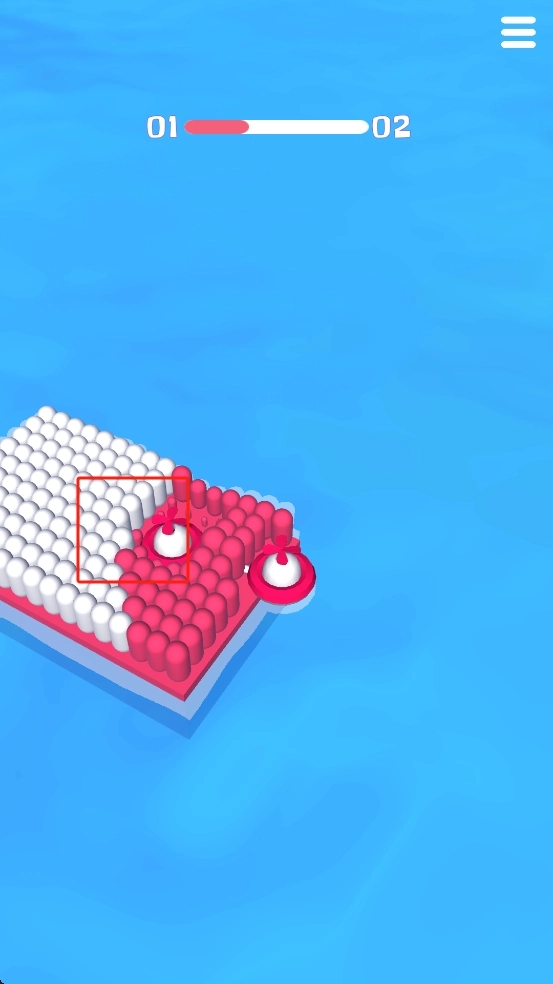 当红色区域向外扩展时,要注意观察圆片的移动方向;碰到白色小球组成的矩阵时,借助红色区域扩展产生的推力,让圆片顺着已经变红的路径滚动,同时避开那些还没变红的白色区域。