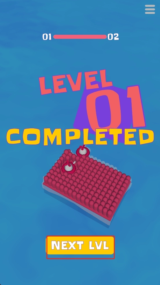 关卡完成后,点击下方按钮即可进入下一关。新关卡的白色小球矩阵布局会更加复杂,需要继续优化红色覆盖范围与圆片滚动的策略。