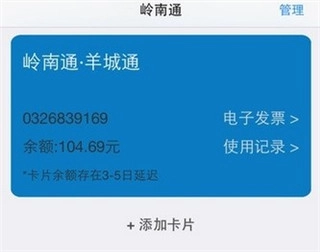 本次新上线的Apple Pay刷岭南通·羊城通空发卡具备如下功能: