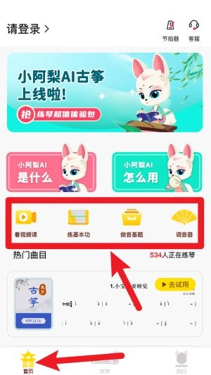 登录成功进入首页后,你可以点击“看视频课”“练基本功”“做音基题”等功能模块,开启学习之旅。