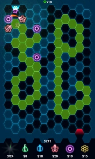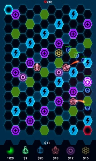 炫光塔防(hexdefense)是安卓平台上备受欢迎的一款塔防类手游。它凭借别具一格的炫光风格、三维画面以及立体声音效,让玩家体验到紧张刺激又极具视觉冲击力的游戏过程。在游戏里,玩家要建造并升级迷宫塔,借助策略性的布局来拦截敌人的攻势,守护蜂巢不被邪恶病毒侵袭。