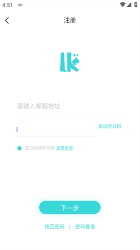 请输入邮箱地址,点击“发送验证码”按钮,随后登录该邮箱查收验证码。填写好验证码后点击“下一步”,完成账号密码的设置,即可完成注册流程。