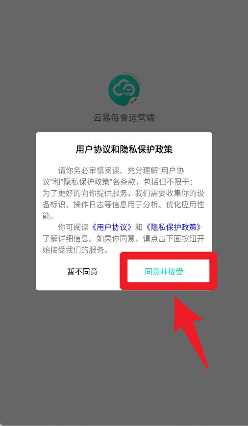 进入系统后,首先会呈现用户协议与隐私保护政策,点击同意并接受就能继续进入系统,以保障后续功能的正常使用。