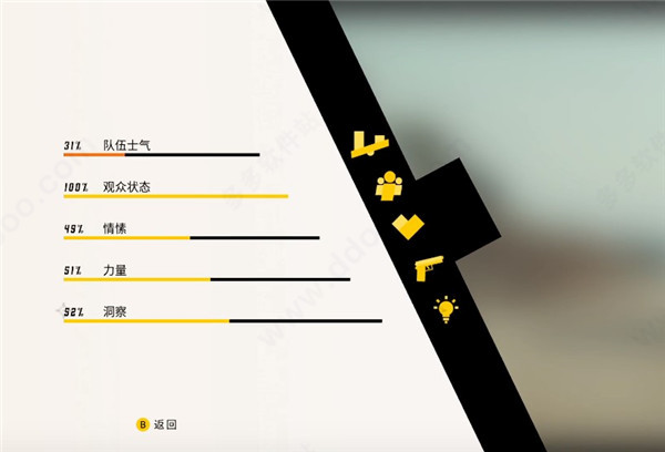 4、在这里我们可以看到:队伍士气、观众状态、情愫、力量、洞察这五项的一个比例情况;