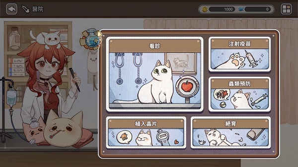 医院除了「看诊」还有「植入晶片」(植入晶片后猫咪走失才有机会可以被寻获)、「注射疫苗」(一生中只需要打一次,不打可能会生重病)、「虫类预防」(远离跳蚤)和「绝育」(预防疾病+有效控制猫咪的数量),是不是真的跟现实中的动物医院很像呀。