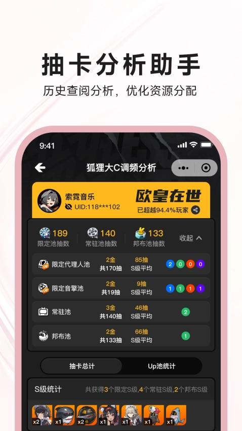 还会为玩家提供抽卡分析工具,帮助大家学会合理分配资源。