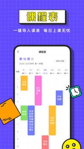 一键导入课程表,有提醒,上课无忧。
