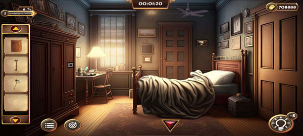 8、想要打开卧室下方的密码,就需要床上右上方的画框中获得六位数密码,通过这些线索就能打开门了。
