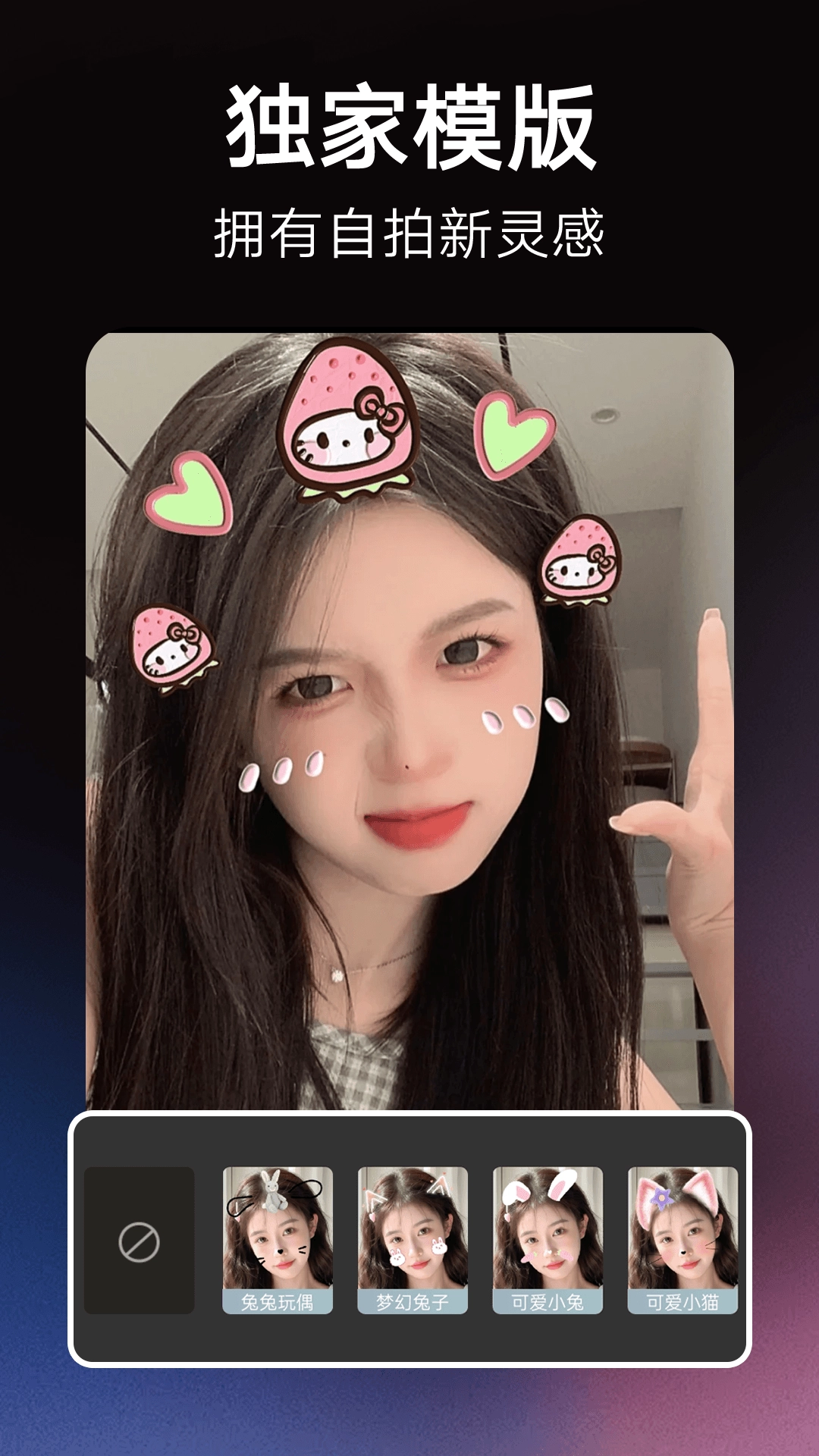 多种风格的AI换装功能,根据自己的喜好选择韩式、日式或欧美风格进行虚拟换装,轻松实现不同的穿搭效果。AI发型功能能够自动检测用户的脸型,推荐适合的发型,帮助用户从头到脚焕发新生。具备AI写真功能,一键生成高质量的写真照片,涵盖樱花、婚纱、学院妆等多种主题,满足不同场合的拍照需求。支持图片转表情包、照片热舞等多种趣味玩法,丰富了用户的使用体验。