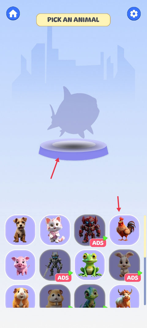 2、下面就是开始融合动物了,将下面框框中的小动物放到上方的展示台上。