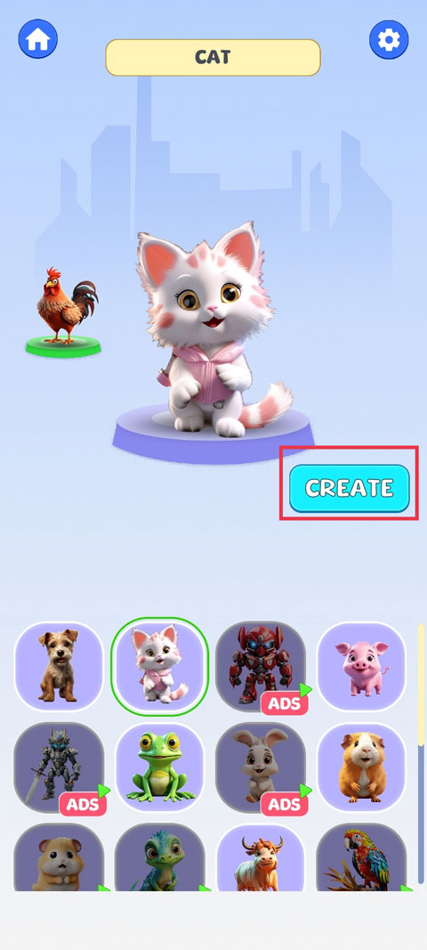3、选择好两个小动物之后,就可以点击下方的“CREATE”按钮了。