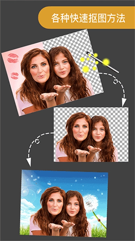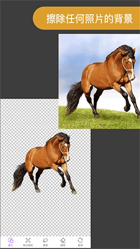 1. 从相册选取图片,用涂抹工具清除多余区域,生成透明背景贴纸
