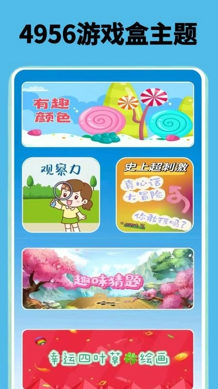4956游戏盒是一款汇集了海量精选趣味游戏盒子资源的应用软件。这里的游戏工具箱资源极为丰富,用户所需的各类游戏辅助工具几乎都能找到,可轻松满足不同群体对游戏工具的使用需求——计时器、手持弹幕、记分牌、配色助手、纪念日、模拟琴键等常用工具一应俱全。同时,平台的游戏乐园玩法多样,猜谜、大冒险、百科解答、古典文学等内容应有尽有;除此之外,软件内的游戏娱乐资源适配不同群体的需求,让大家能轻松体验更多元的乐趣。对这款软件感兴趣的小伙伴,不妨来本站体验一番!