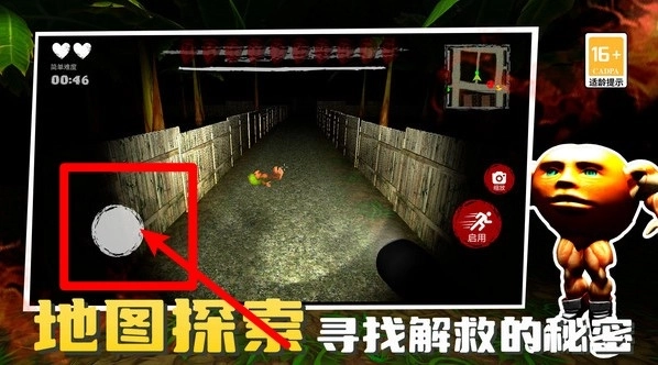 1.左下圆形虚拟摇杆是移动核心,拖动即可在幽暗走廊自由探索寻找解救线索并躲避怪物袭击。
