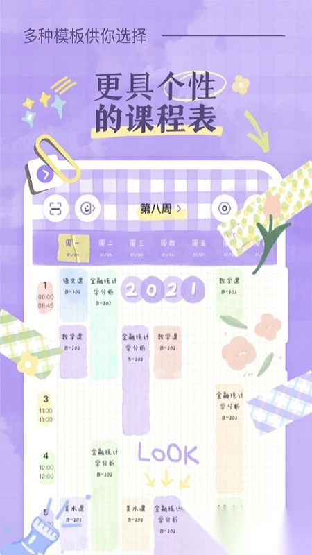 创建个人独有课程表,自由选用主题背景与装饰贴纸