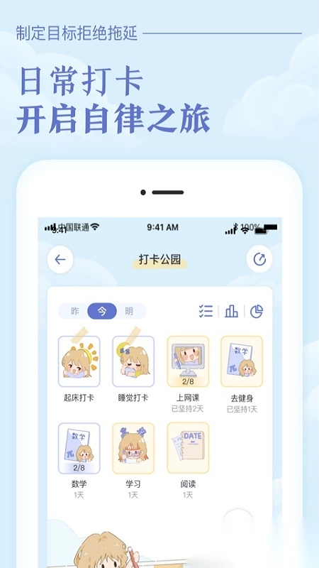 每日为目标打卡,早起、学习、运动均可记录