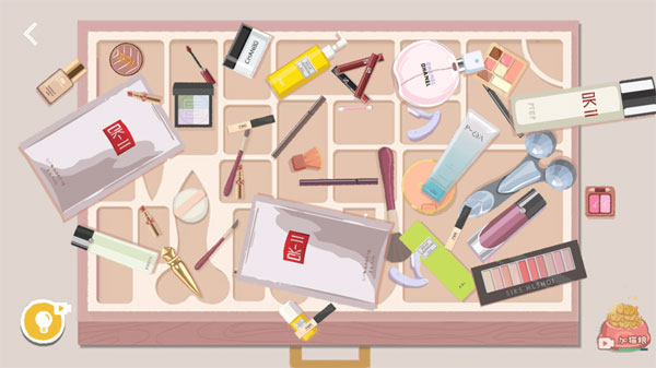 1、依旧选择“首席收纳”里的第一关神仙姐姐,你得把化妆盒里的物品放置到指定地点,完成收纳动作。