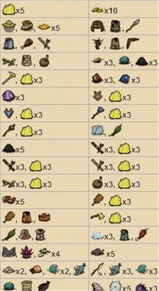 物资:矿石、树枝、岩浆矿、燧石、石头、高鸟等