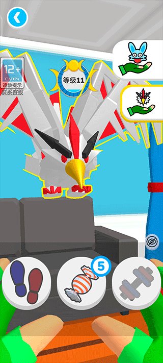 3、当面对萌宠时,我们能够通过投喂糖果来实现升级,每投喂一颗糖果,萌宠就能直接提升一级。糖果会在地图的随机位置刷新,此外,击败对手也能够获取糖果。与此同时,还能通过锻炼来让萌宠升级,点击最左边的按钮即可出门展开探险。