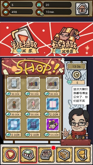 点击图中所示位置处,在这里不仅可以购买很多有用的道具,还能招募到厉害的主播。