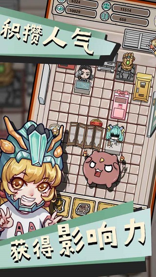 1、卡通立绘的游戏风格,放置休闲模拟的管理体验,选择最佳的主播吸引人气。