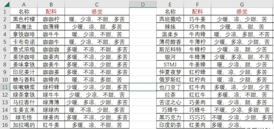 咖啡、柠檬|薄荷、蜂蜜|牛奶、牛奶|咖啡、牛奶|咖啡、咖啡