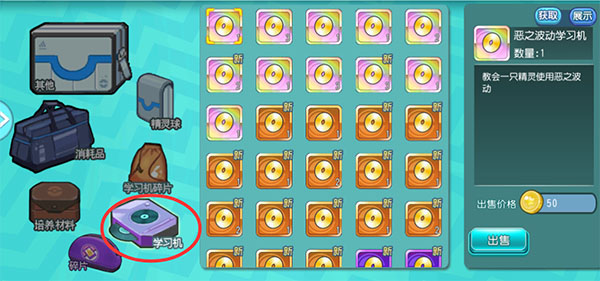 选中技能后点击获取,即可学习技能,如果技能已经满了,那就需要选择替换的技能哦。另外需要注意的是,学习机学习的技能是无法进行回忆的,还请训练师们留意哦。