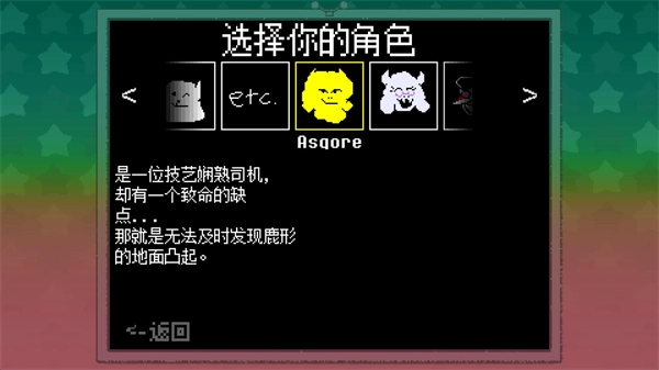 大运羊爸游戏手机版是一款基于《传说之下》《三角符文》世界观打造的粉丝向同人游戏,在这款游戏中,玩家将扮演备受欢迎的角色羊爸艾斯戈尔,化身为“大运羊爸”,驾驶蓝色卡车勇敢闯关,游戏精心再现了角色的经典形象和丰富世界观,同时巧妙融合了网络热梗和幽默剧情,既让老玩家迅速捕捉到情怀彩蛋,也让新玩家轻松享受无厘头的欢乐,IP的还原度和玩梗的趣味性都达到了极致,为玩家带来了一场充满乐趣和挑战的游戏盛宴。