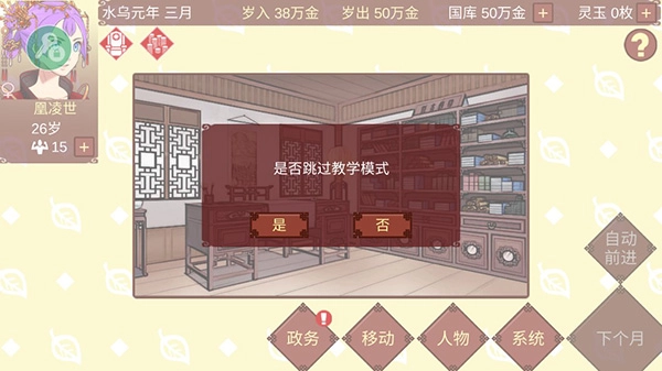 政略不够哪怕廉洁100%国库也不会涨很多,日子过得紧巴巴会让你扩不了出征的军队,修不了恢复体力的栖梧宫,尤其是需要大量钱财才能开启的j外探索。