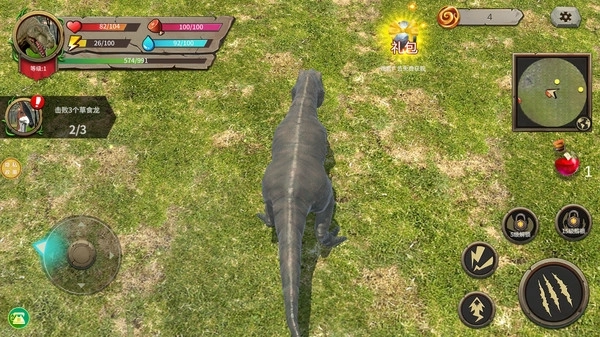 1.攻击收集成长:操控霸王龙击败场景内的小型恐龙获取食物,吃得越多进化越快,成长过程有视觉与手感双重满足,越吃越上头。