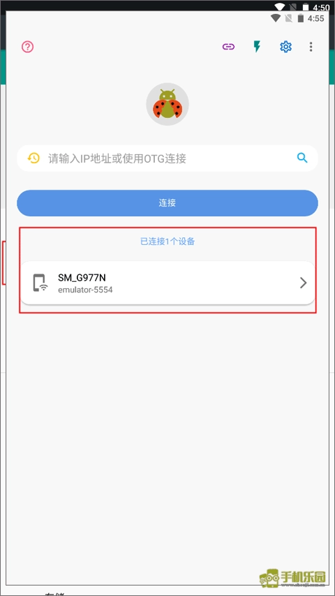 这时,我们在新设备上启动甲壳虫ADB助手,输入被控手机的IP地址与端口号,就能成功连接到目标手机设备。