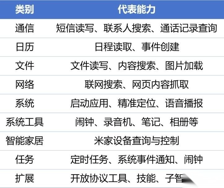 Xiaomi miclaw 已将手机的系统能力封装为 50 余项系统能力与生态服务(目前仍在持续扩展中)。