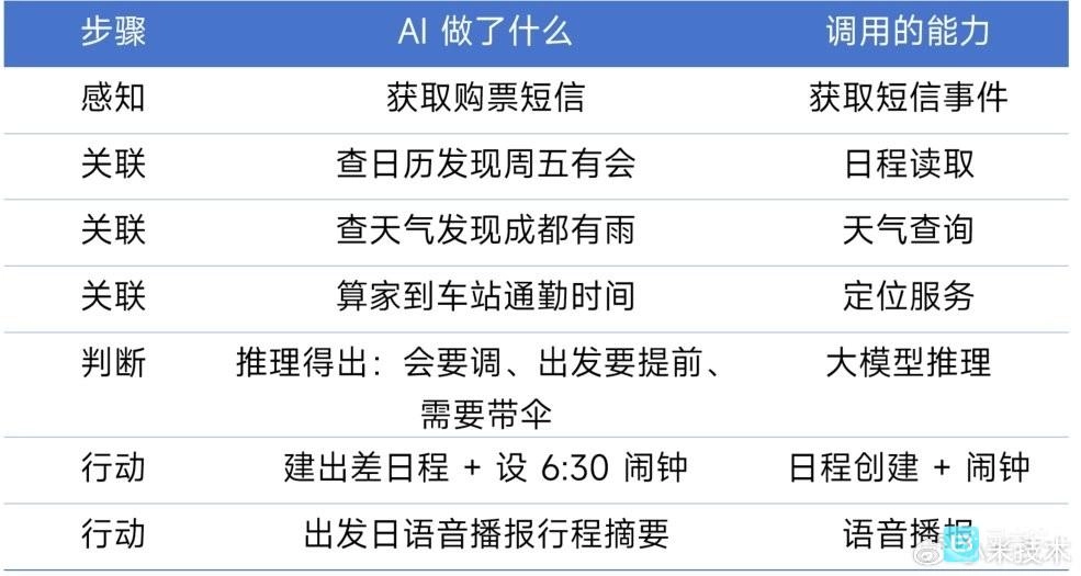 普通应用的逻辑是“感知→行动”:收到通知后,直接显示通知。而Xiaomi miclaw在这中间增加了“关联”与“判断”两步,这正是AI Agent和传统软件的核心区别所在。