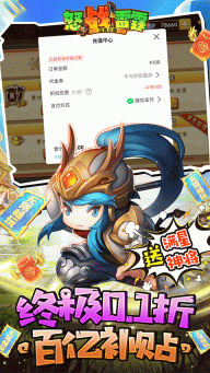 7、后缀说明:永久0.1折,上线即送关羽张飞,通关保送满星主角。