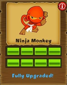 5. 忍者猴(Ninja Monkey)忍者猴简直超赞!一开始就能轻松闯过好多关卡呢。它攻击速度比较快,在游戏初期就能够对迷彩气球发起攻击。(悄悄说一句:忍者猴的原型是《特种部队》里的黑白忍者“蛇眼”与“白幽灵”哦。)