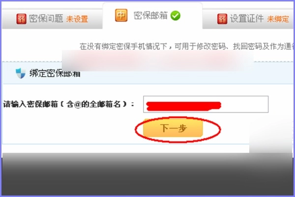 关闭该页面,进入下方页面,输入需要修改的新邮箱地址,然后点击下一步。