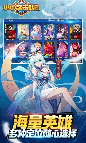 3、海量英雄 随心选择:游戏提供了多种类型的英雄以适应不同玩家的喜好:突击型、回血型、防御型和控场型英雄。