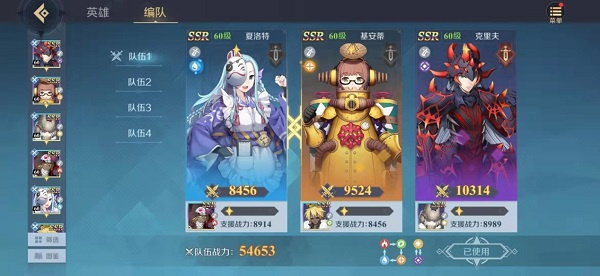 编队玩法可以让玩家们方便快捷的组建自己的英雄队伍,一支完整的英雄队伍需要上阵6名英雄。其中3名为主战英雄,另外3名则为支援英雄。主战英雄是玩家操控的英雄,可以自主释放技能,并且使用神角技巧。而支援英雄,则是由AI控制自动进行战斗,无法使用神角技巧。需要注意的是,支援英雄的使用会有冷却时间限制,并且只能战斗一段时间,战斗时间结束后,便会进入到无法召唤的状态。只有等冷却时间结束后,才可以再次召唤进场战斗。目前的游戏版本中,玩家最多可以提前设置四个不同的队伍,冒险的过程中可以根据战斗需要来进行切换。