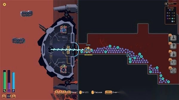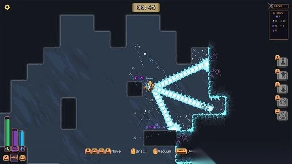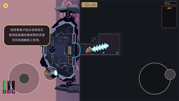 2、采掘:对墙体各处进行深度挖掘。寻觅可用于升级的资源与技术,探索矿洞中的全新生物群系。但要留意,怪物来袭时需即刻回到你的机械蜘蛛身边。