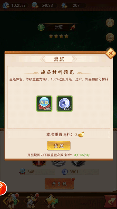 在游戏初期,建议集中资源培养一名武将,避免分散投资导致资源不足。系统赠送的关羽和华佗值得重点培养,建议将其提升至9星或10星。9星武将可以重置并返还全部资源,而10星武将则可以作为材料用于其他武将升11星。