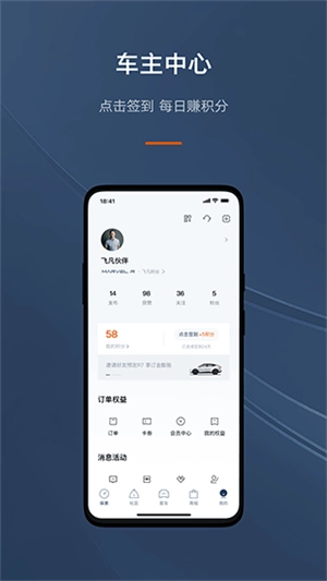 【展厅】支持爱车订购、智能控车操作、虚拟体验功能,还可预约试驾 【探索】涵盖资讯浏览、缤纷活动参与、社区论坛互动及积分商城兑换 【车信】具备语音控制发消息、精准定位、一键接人等实用功能 【我的】个人积分、优惠券、车主手册等基础信息清晰呈现,一目了然