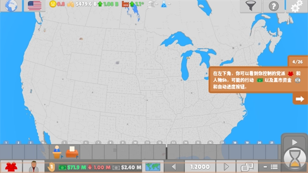 国会议员2游戏安卓版是一款采用了虚构政治背景的手机沙盒模拟类游戏,在这款游戏中,玩家将扮演一名国会议员的身份,为了使得自己的国家获得发展,将积极参与到一系列国会议事中去,玩家需要发布自己的各种便民国策,能够很好地惠及民生,让自己的地位显著提升,这种设计为玩家提供了一个充满挑战和乐趣的游戏世界。